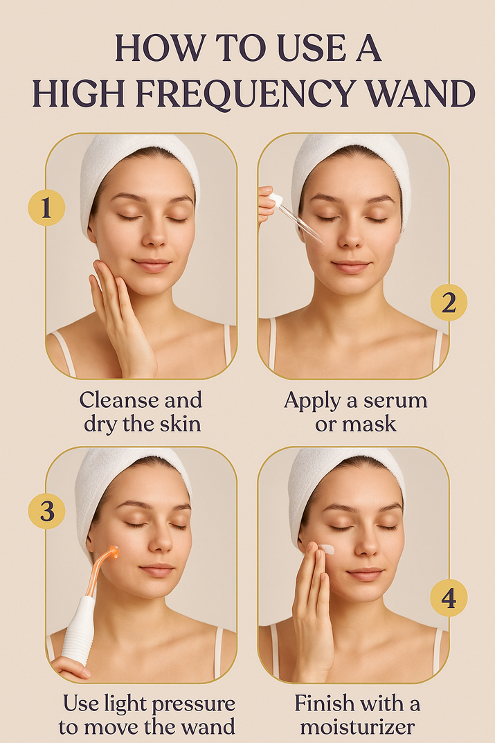 The High Frequency Wand is your secret weapon against time. Using gentle, rejuvenating electrical energy, it awakens tired skin cells, boosts circulation, and restores that youthful firmness and radiance you thought was gone for good.